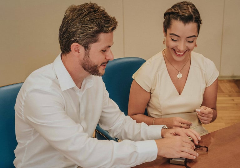O estúdio fica a poucos metros do cartório, pensado para acontecer com calma antes da cerimónia. As sessões são simples e focadas em vocês —não incluem cenários, figurinos ou acessórios. Cabelo e maquilhagem também não fazem parte, podendo ser organizados à parte, se desejarem.